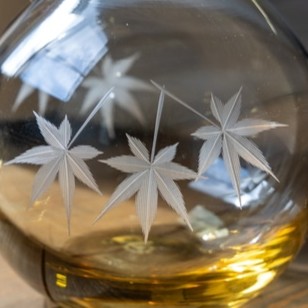 山々や湖と共に北海道に自生する樹木を数回に分けて硝子に彫り込むことで奥行きが生まれ、雄大な北海道の自然を立体的に表現しています。