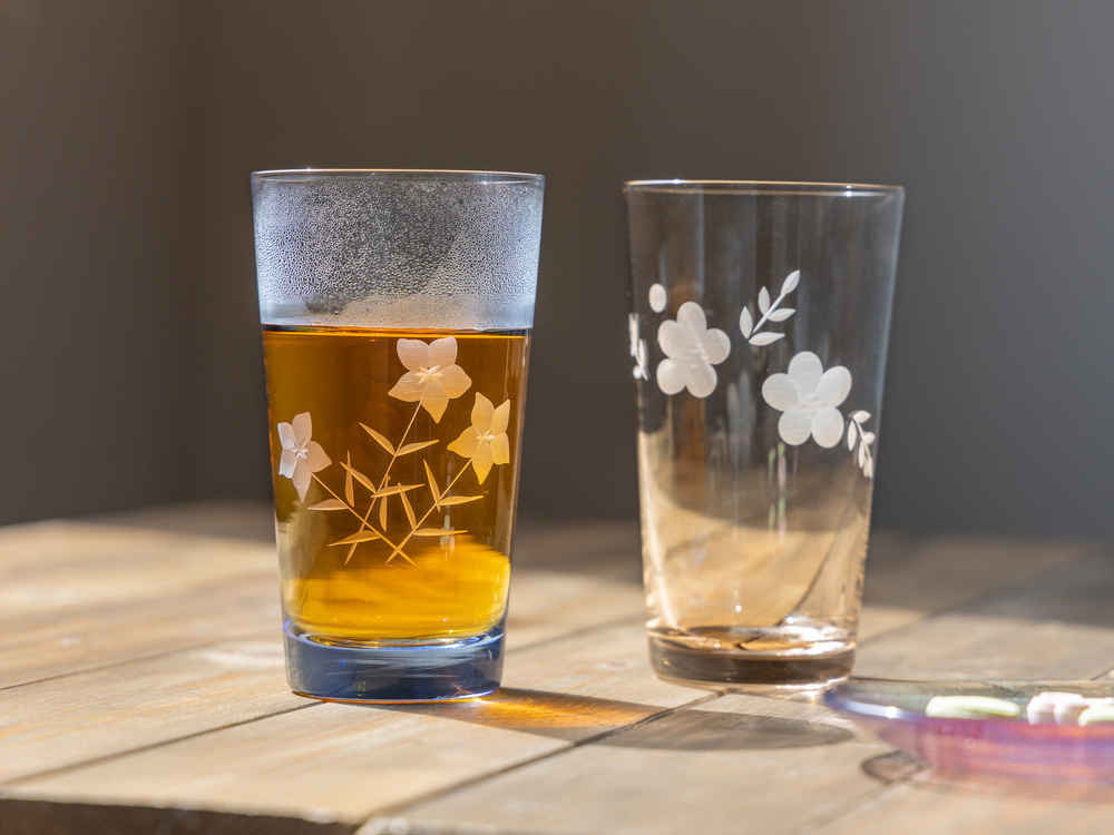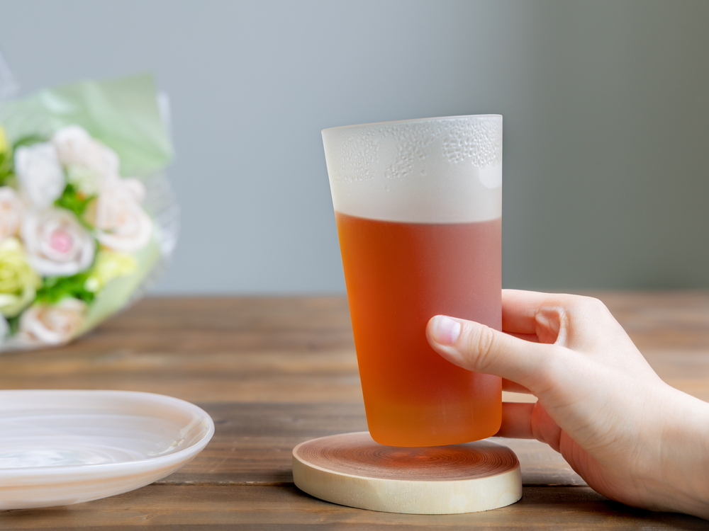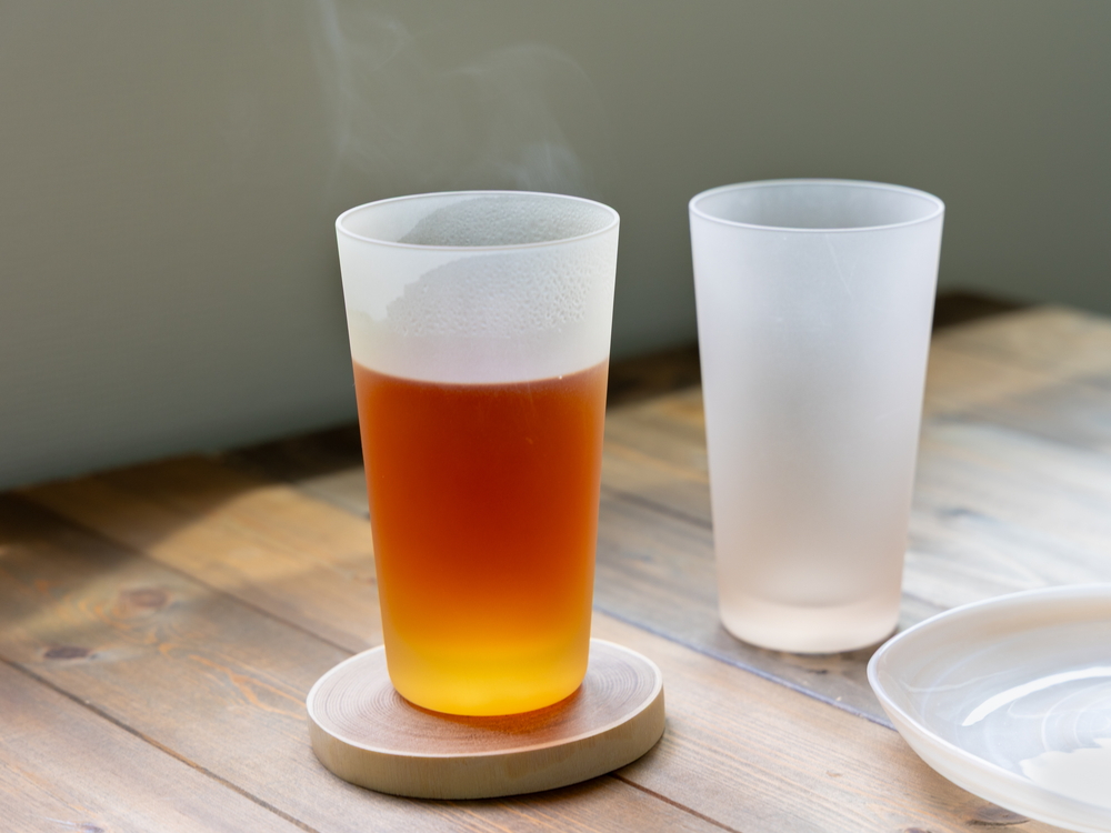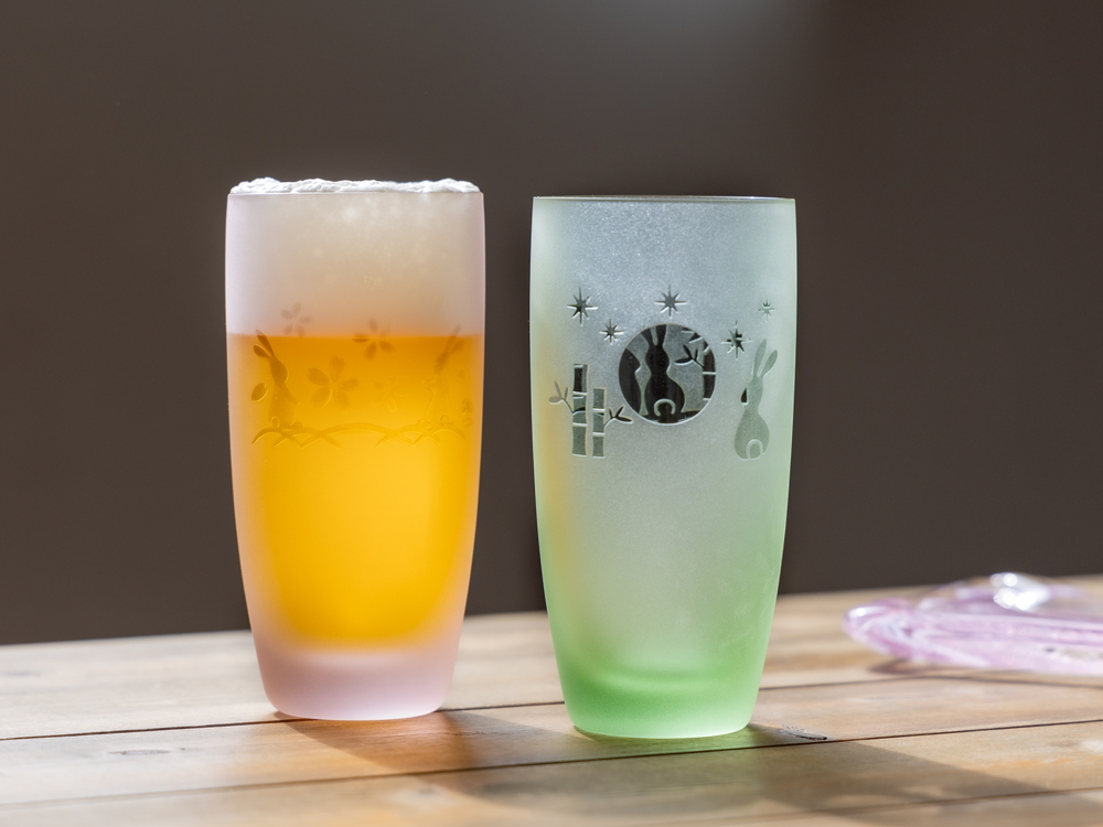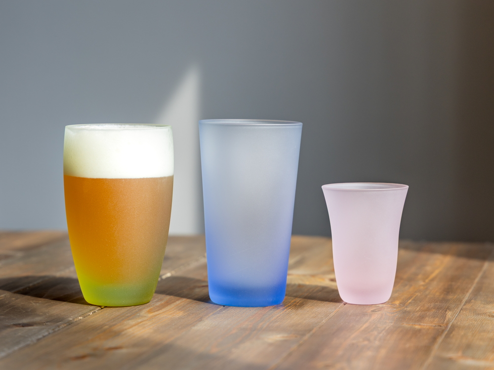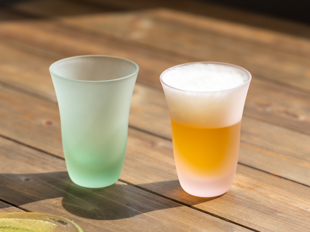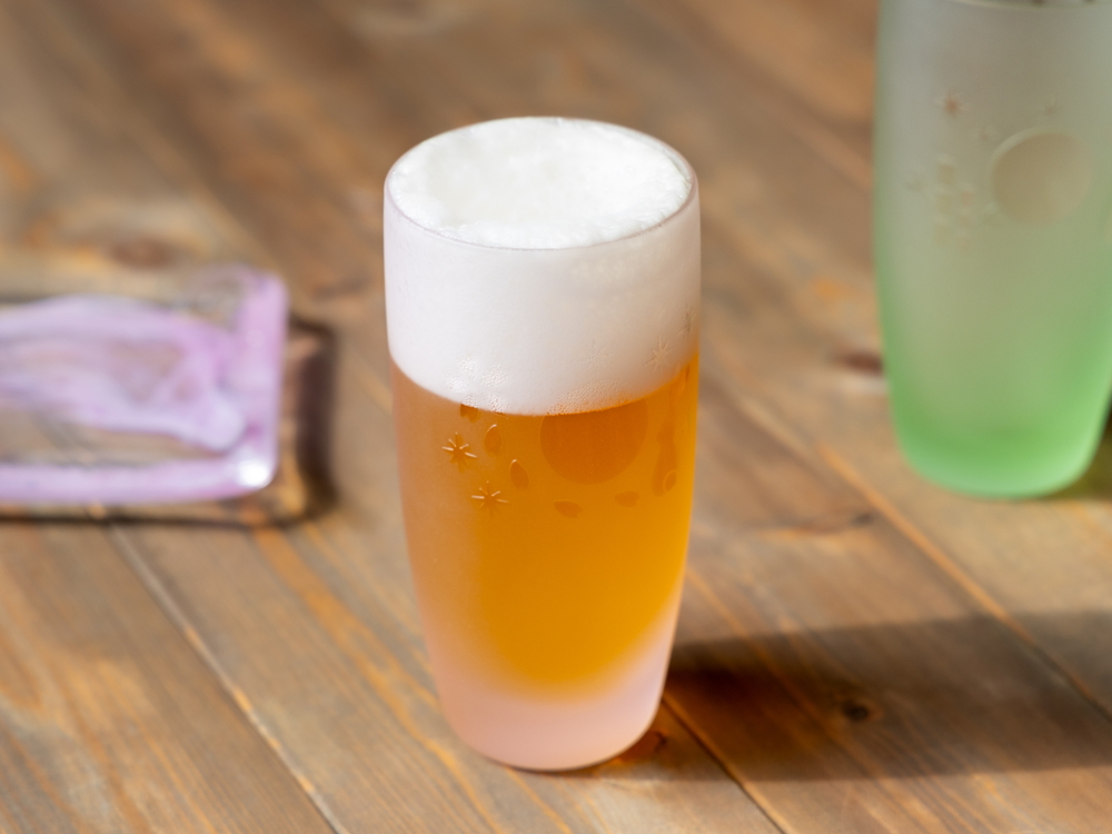 グラス内側をすりガラス加工で仕上げる事で、ビールを注いだ時にきめの細かい泡が立ち、ビールの「旨み」を閉じ込めます。