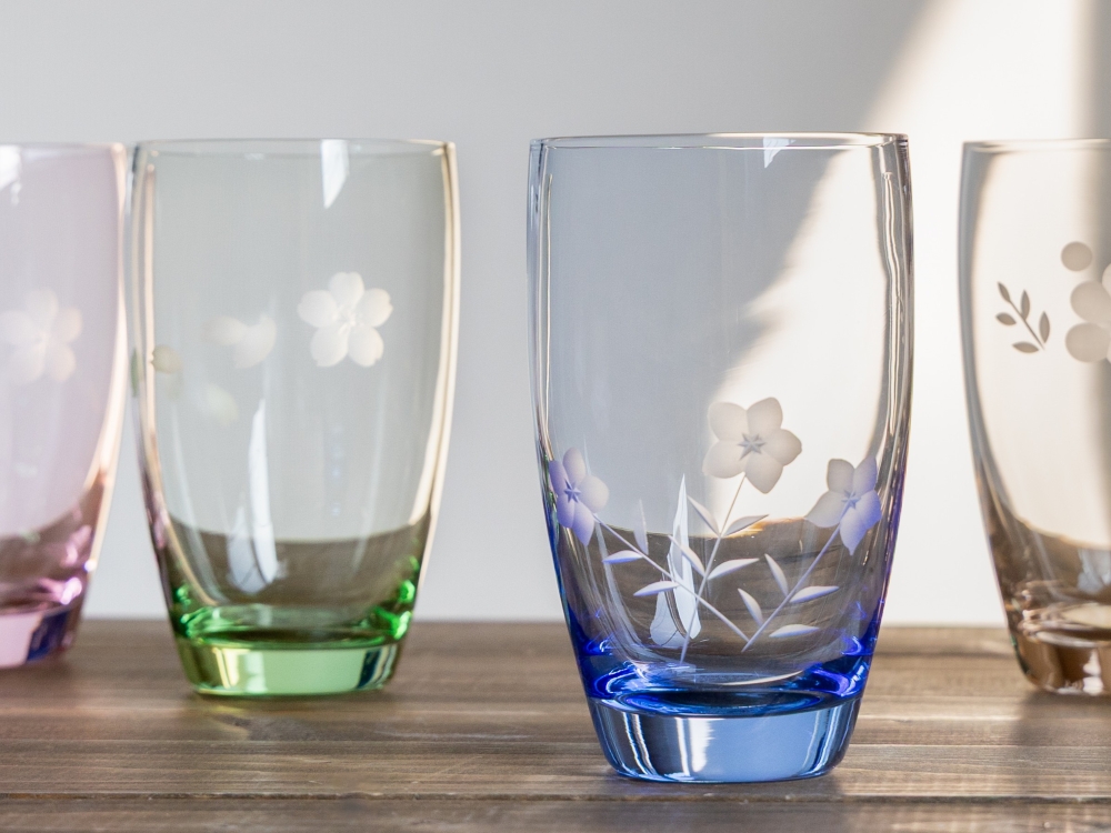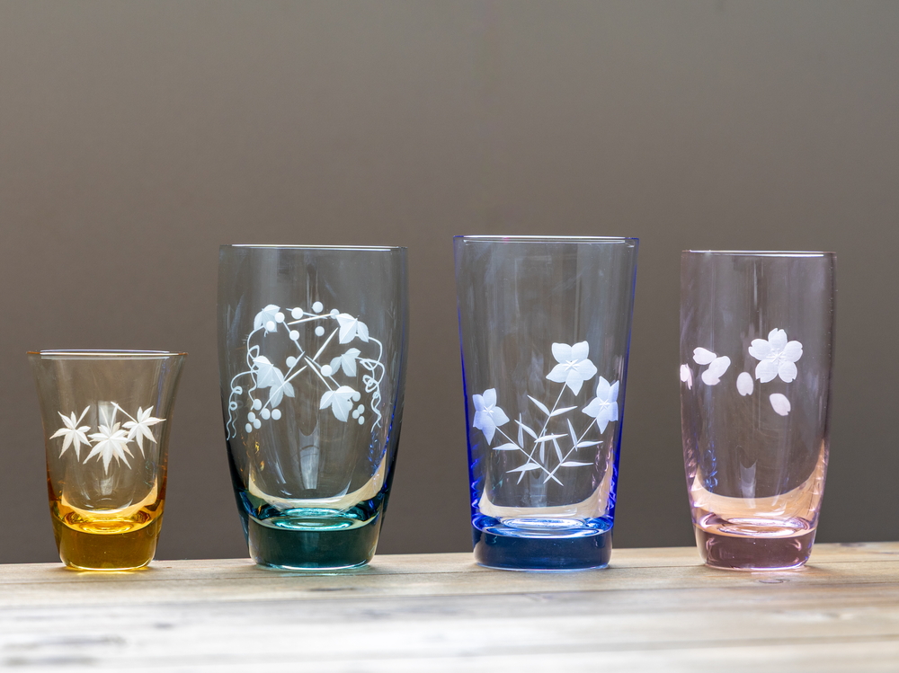 製作にはサンドブラスト技法のひとつで、高度な技術を必要とする《段彫り技法》を使用しています。