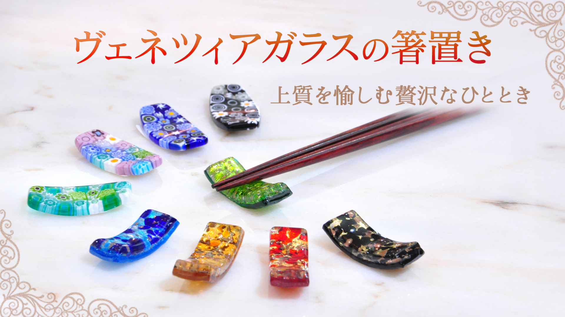 「ミッレフィオーリ技法」で出来ている華やかな箸置きです。