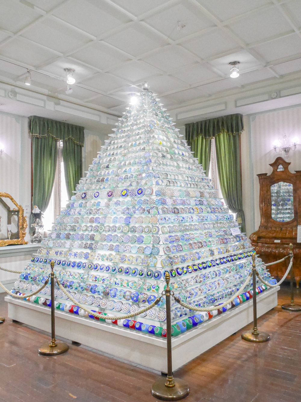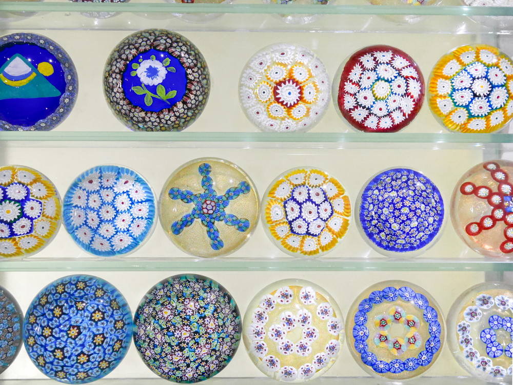 ミッレフィオーリのペーパーウェイトが約2,500個並ぶ