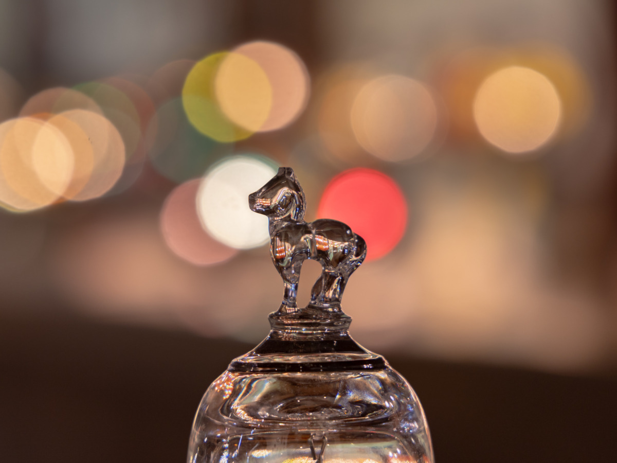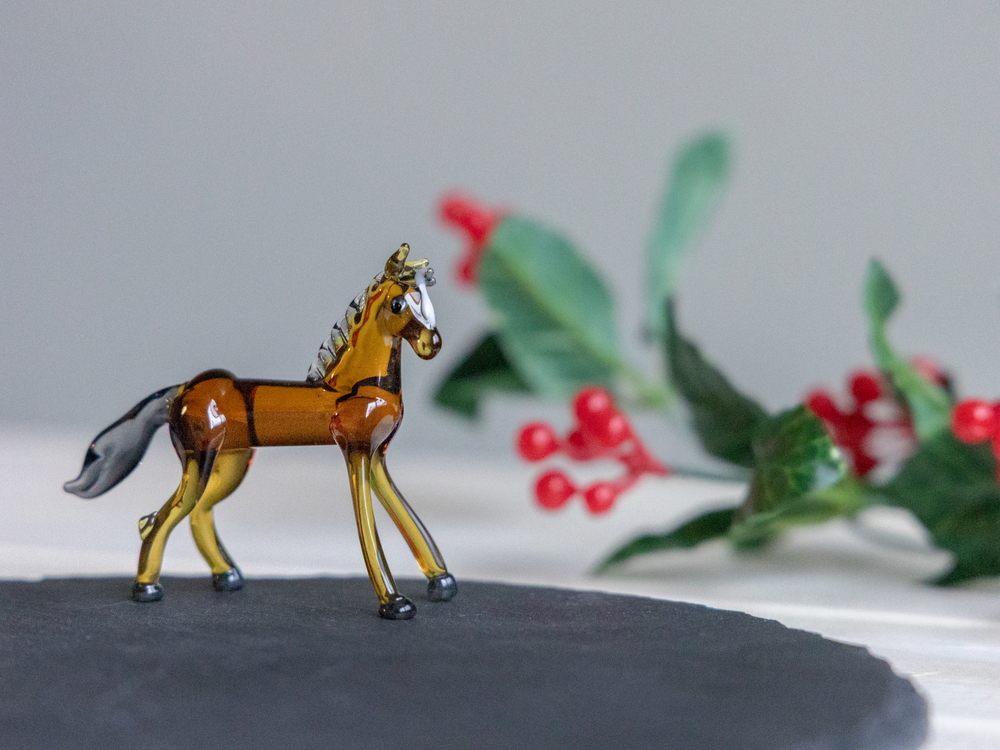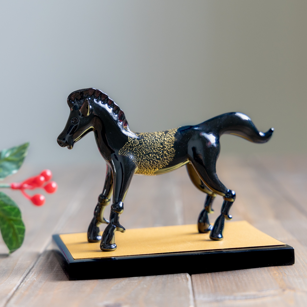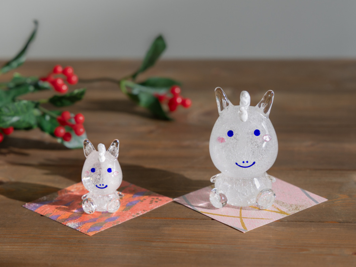 干支の「午」や馬をモチーフにした硝子のオーナメントは
