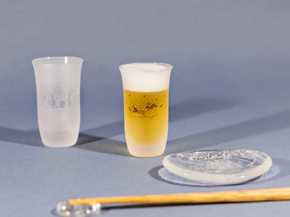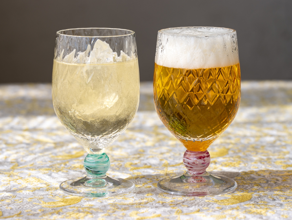 「氷の華」シリーズのグラスで、柔らかな泡立ちにうっとり。