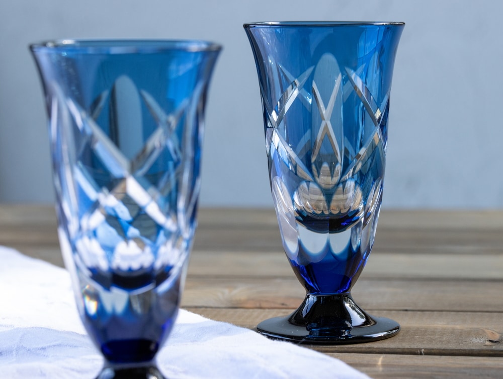 小樽の美しい海を思わせる藍色の食前酒グラスです。