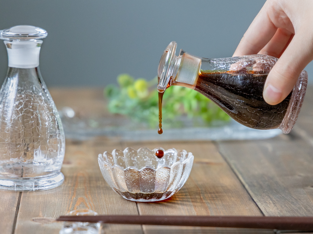 お醤油の色がよく見える透明なお醤油差しをお探しならクリスタル館へ。